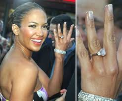 Jennifer lopez flashes the engagement ring ben affleck gave her in 2003 at the premiere of his movie daredevil.